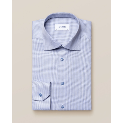 Eton Slim Fit - Light blue micro check twill - Cut away
